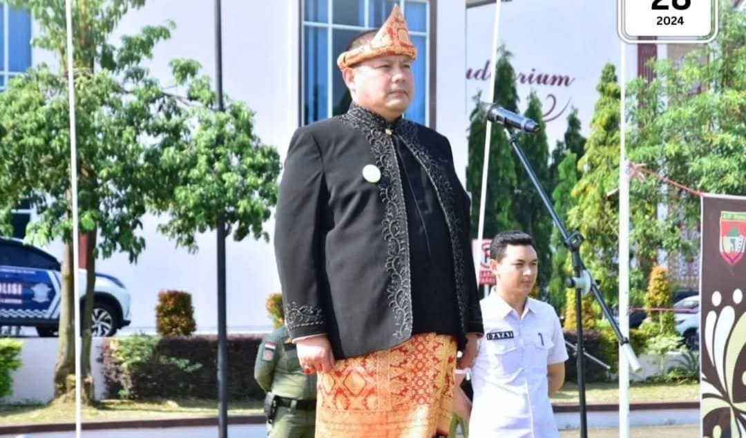 MUSI RAWAS- Pjs Bupati Kabupaten Musi Rawas (Mura) Deva Octavianus Menjadi Inspektur Upacara Peringatan Hari Sumpah Pemuda Ke-96 Tahun 2024 di Halaman Kantor Bupati Mura, Senin (28/10/2024).